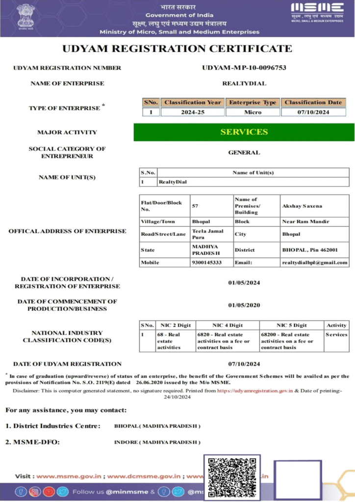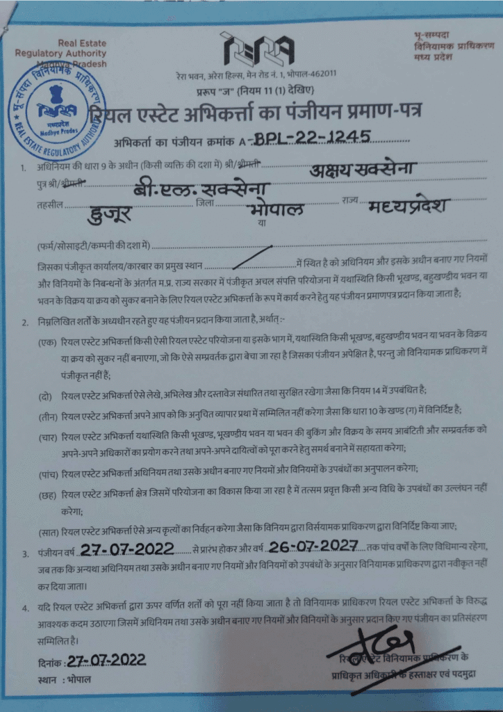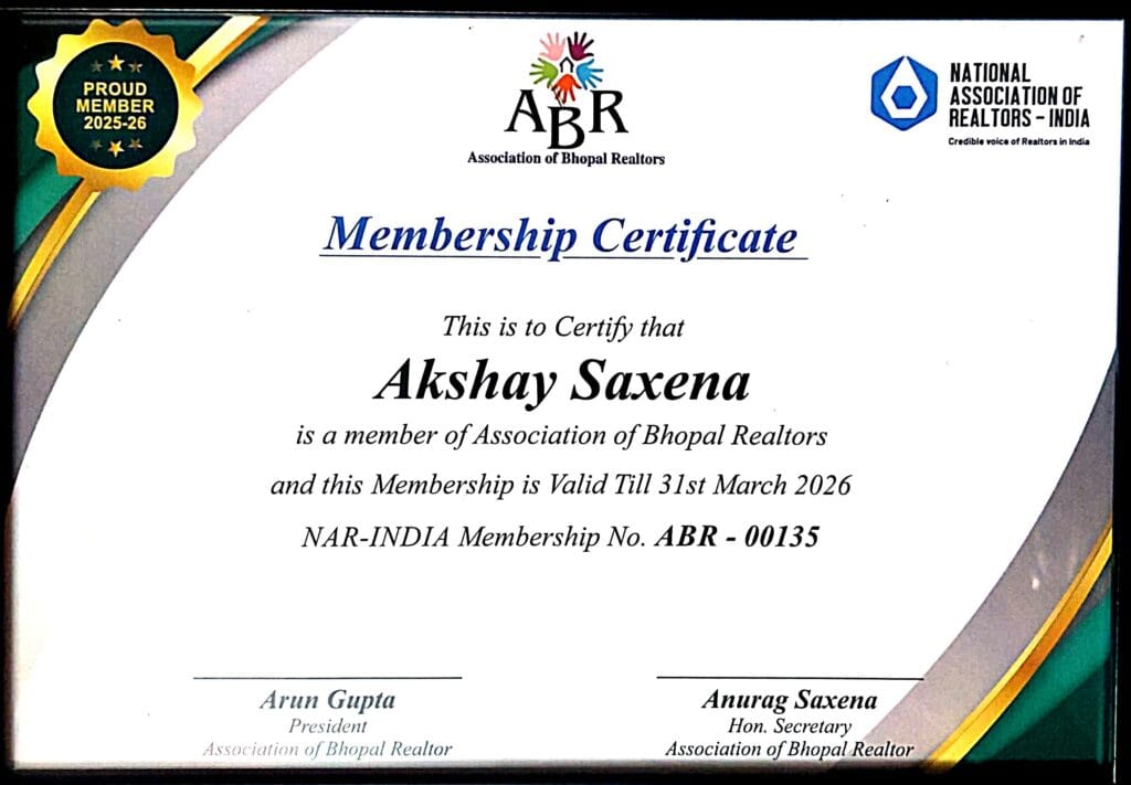 RERA & MSME Registered | Member – Association of Bhopal Realtors | Built on Trust & Transparency